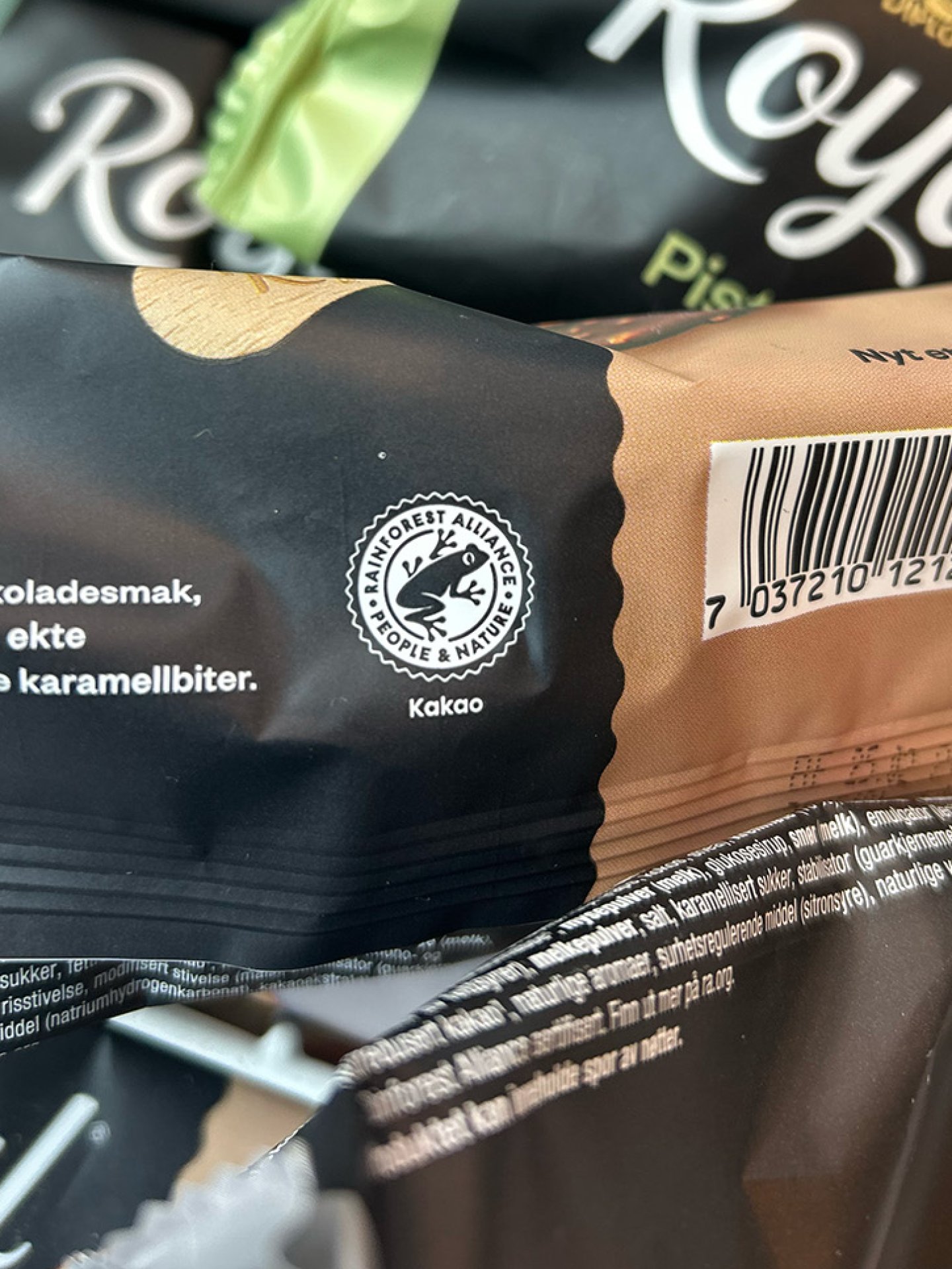 Emballasjen utfyller mange viktige funksjoner både mht. lovkrav, funksjonalitet for forbruker og ivareta mattrygghet og holdbarhet. Ved utgangen av 2024 var 96,5% av emballasjen resirkulerbar, men målet vårt er 100%. De siste årene har vi testet mange løsninger for å komme nærmere dette målet, men har erfart at det ikke alltid finnes løsninger som kan levere på alle krav emballasjen har. I de kommende årene vil vi derfor øke innsatsen i samarbeid med våre leverandører for å finne løsninger som er resirkulerbare. Emballasjen som enda må kastes i restavfallet er stryllen til Krone-is og Gigant, papiret til Sandwich og oblatene på kartongbegrene.
