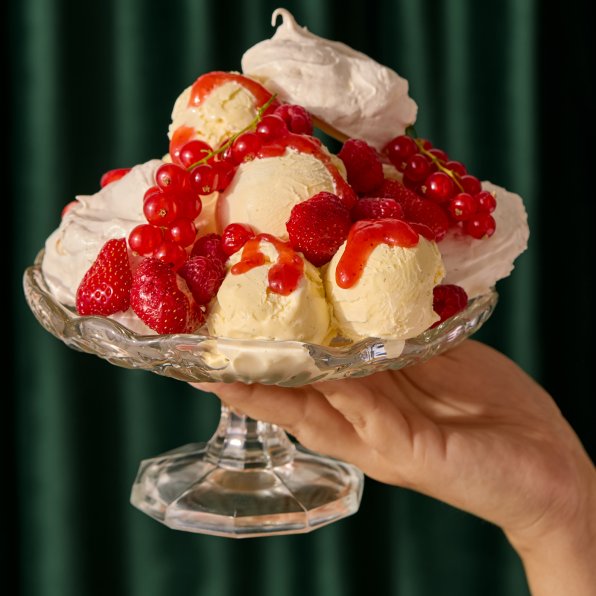 Sprø, søt marengs møter silkemyk vaniljeis og friske, saftige bær i en perfekt balansert pavlovaiskake. En frisk og kremet dessert som smelter på tungen og frister til flere biter.